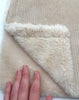 Bei dieser handgefertigten Hundedecke besteht die eine Seite aus Cord in der Farbe Beige und die andere Seite aus weichem Kunstfell in der Farbe Beige.