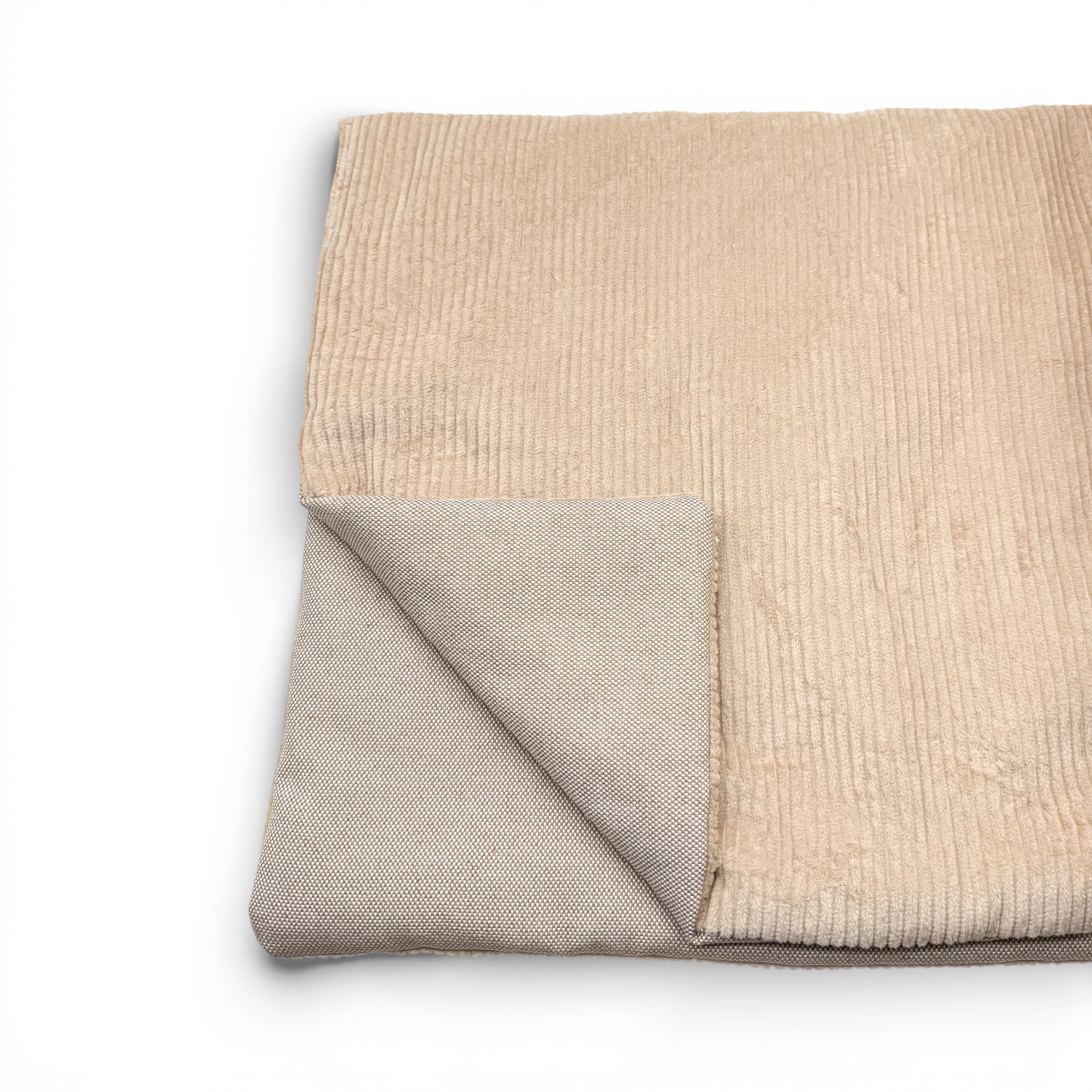 Bei dieser handgefertigten Hundedecke besteht die eine Seite aus Cord in der Farbe Beige und die andere Seite aus Anti Flecken Outdoor Stoff. Zusätzlich ist die Decke von innen mit einem leichten Flies versehen und somit auch ein weiches Polster. Die Decke hat ca. die Maße von 60x80 cm und somit perfekt zum mitnehmen geeignet weil man sie schön handlich falten kann.