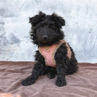 Das Softgeschirr auf dem Bild besteht aus Cord inder Farbe Altrosa und wurde mit Kunstfell in dunkel Beige unterlegt. Als Verschluss dient ein Klettverschluss so wie ein Zusätzlicher Klickverschluss und zwei D-Ringen zum befestigen der der Leine.