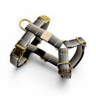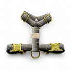 Das Geschirr auf dem Bild besteht aus Paracordband in den Farben Schwarz, Caracol Grau, Grey und Silber Grau. Die Paracordbänder wurden mit einer Zickzack Naht zusammengenäht und das Halsband zusätzlich mit Gurtband unterlegt und verstärkt. Als Schließe wurden zwei Klickverschlüsse verarbeitet und Geschirr ist stufenlos an Bauch, Brust und untersteg verstellbar.