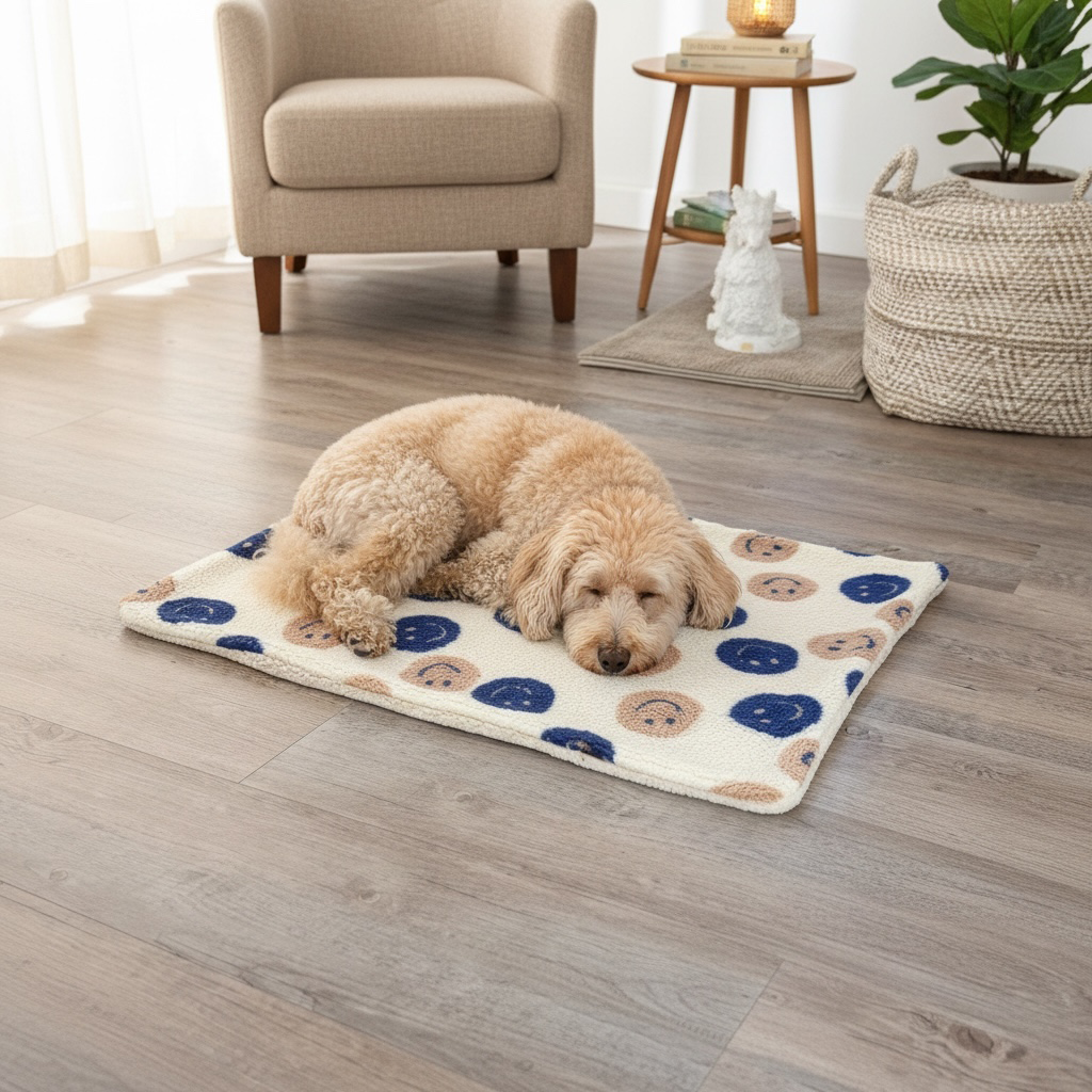Hundedecke Lammfell Smiley Creme | 70x100 cm