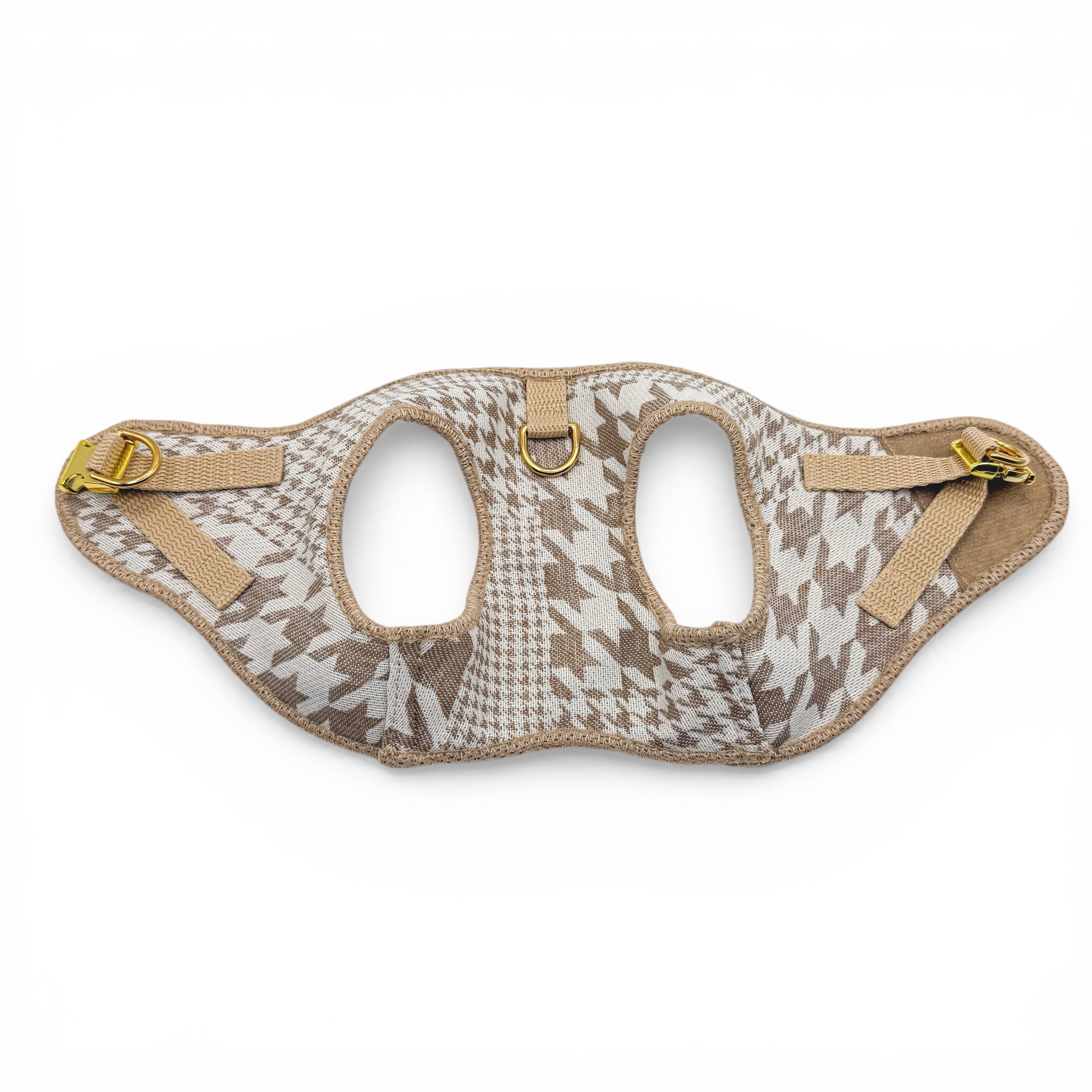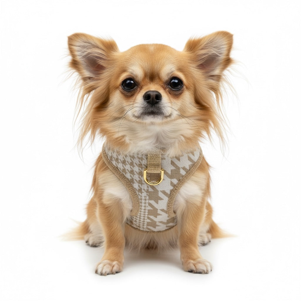 Dieses modische Hundegeschirr aus Stoff im Hahnentritt Muster vereint Stil und Komfort. Die Außenseite aus hochwertigem Stoff sorgt für einen edlen Look. Innen ist das Geschirr weich mit atmungsaktivem Mesh gepolstert – für ein angenehmes Tragegefühl und optimale Luftzirkulation und Passform, auch an wärmeren Tagen.