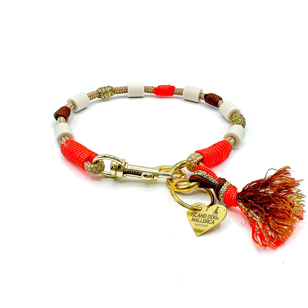 Farbe & Material: PPM Tau in der Farbe Beige, Paracordtakelung in Neon Orange und Glitzerband Gold.