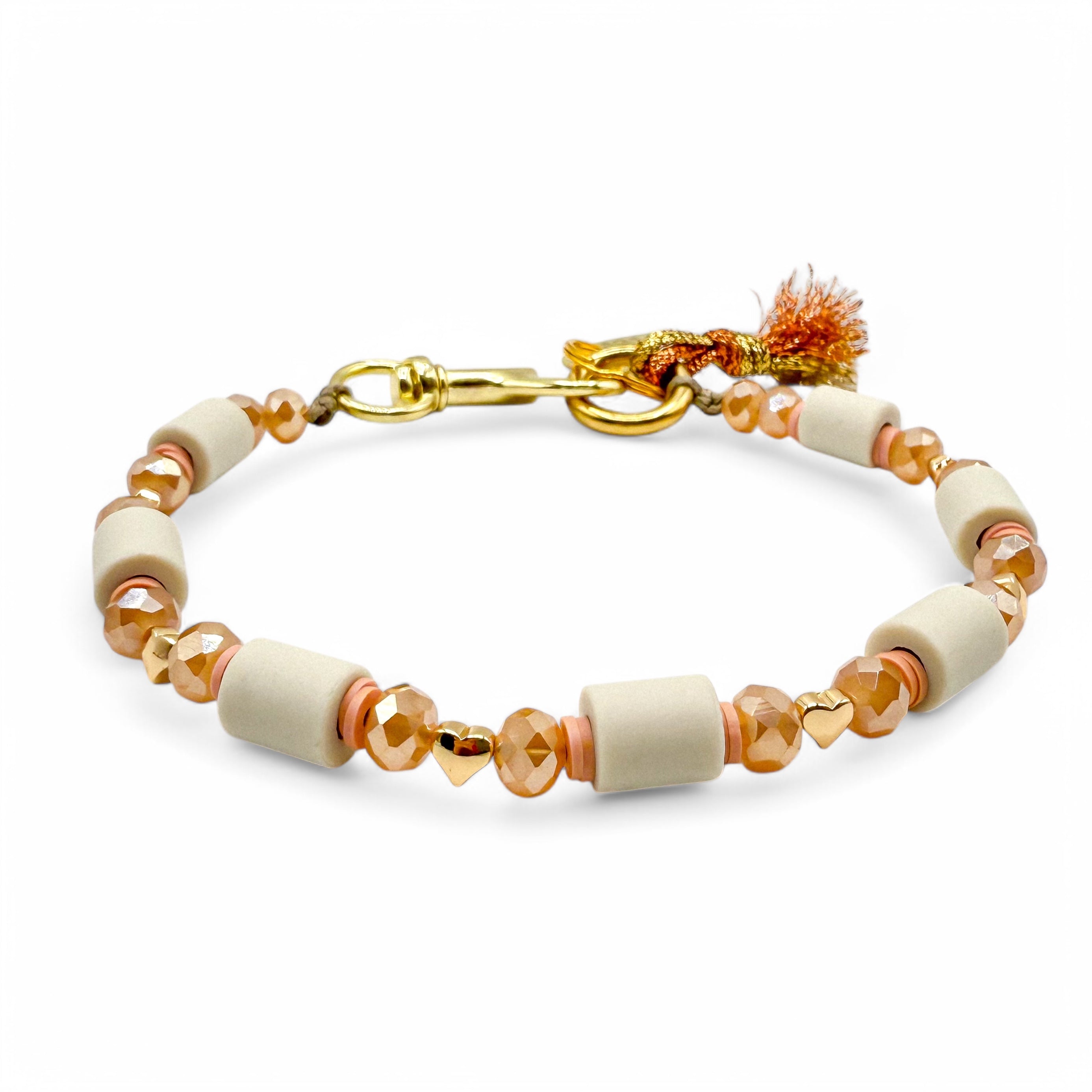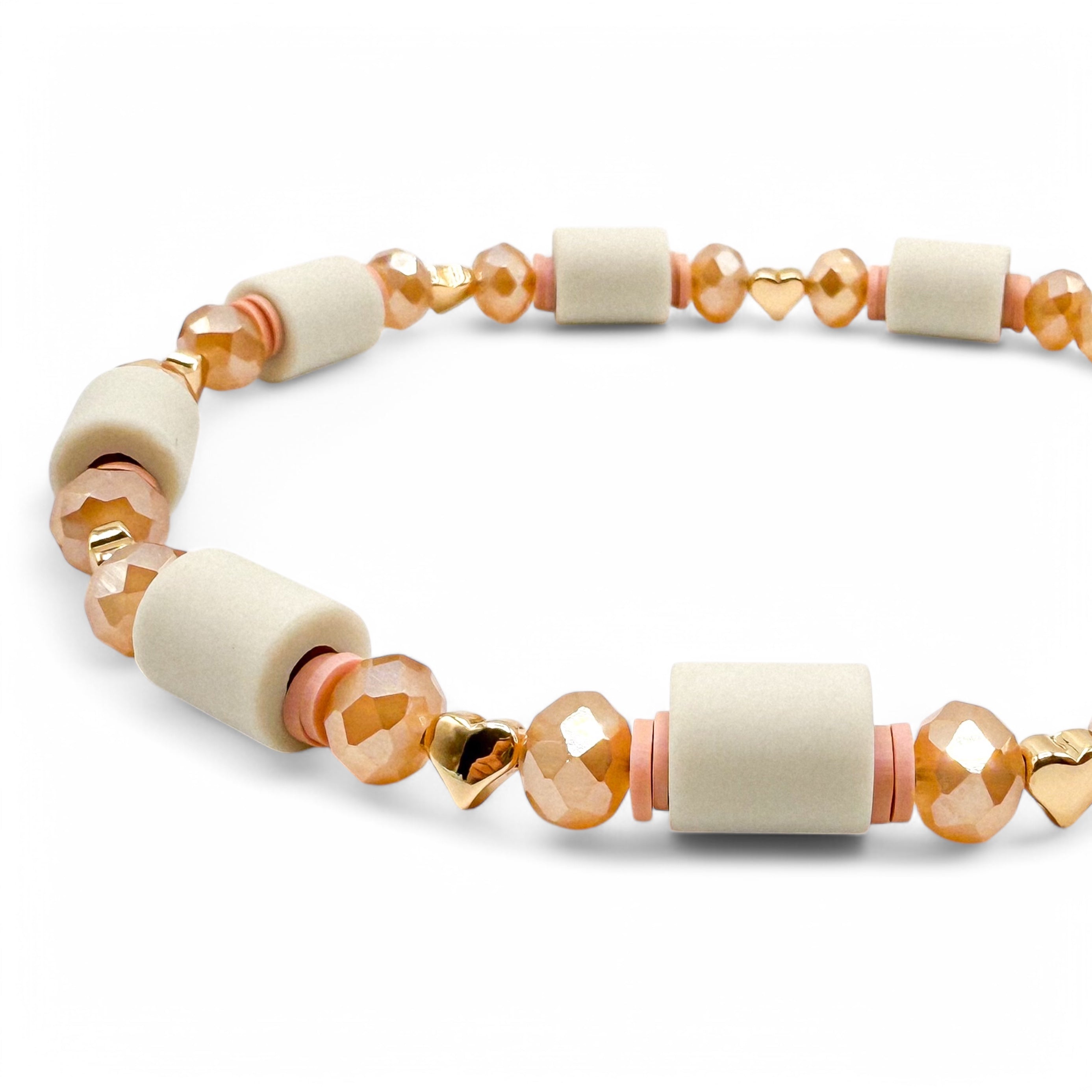 Farbe & Material: Glasperlen und 18 Karat vergoldete Messing Perlen in Herzform, EM Pipes