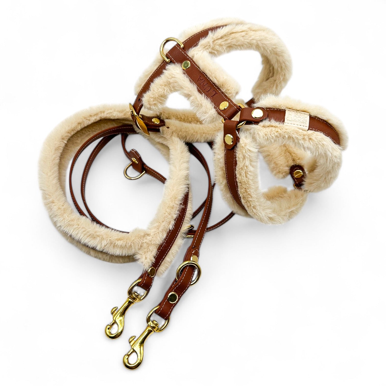 Konfiguriere dir dein Deluxe Line Fell Geschirr aus vielen wunderschönen Biothanefarben und verschiedenen Kunstfellen. Alle Geschirre sind bei 30 Grad in der Waschmaschine waschbar und können mit dem Fön anschließen getrocknet werden. So plustert sich das Fell wieder auf uns wird wieder puschelig und weich nach dem waschen.