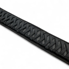 Das Halsband auf dem Bild besteht aus Biothane in der Farbe Schwarz und wurde mit Paracordand im im Felchtmuster verziert. Das Halsband ist außerdem mit einer weichen Kunstlederpolsterung in Schwarz versehen und ermöglicht so einen super angenehmen Tragekomfort für deinen Hund. Paracord, Biothane und Polsterung sind komplett vernäht. Als Verschluss ist eine Doppelstegschnalle angebracht die das Halsband mehrfach verstellbar macht.