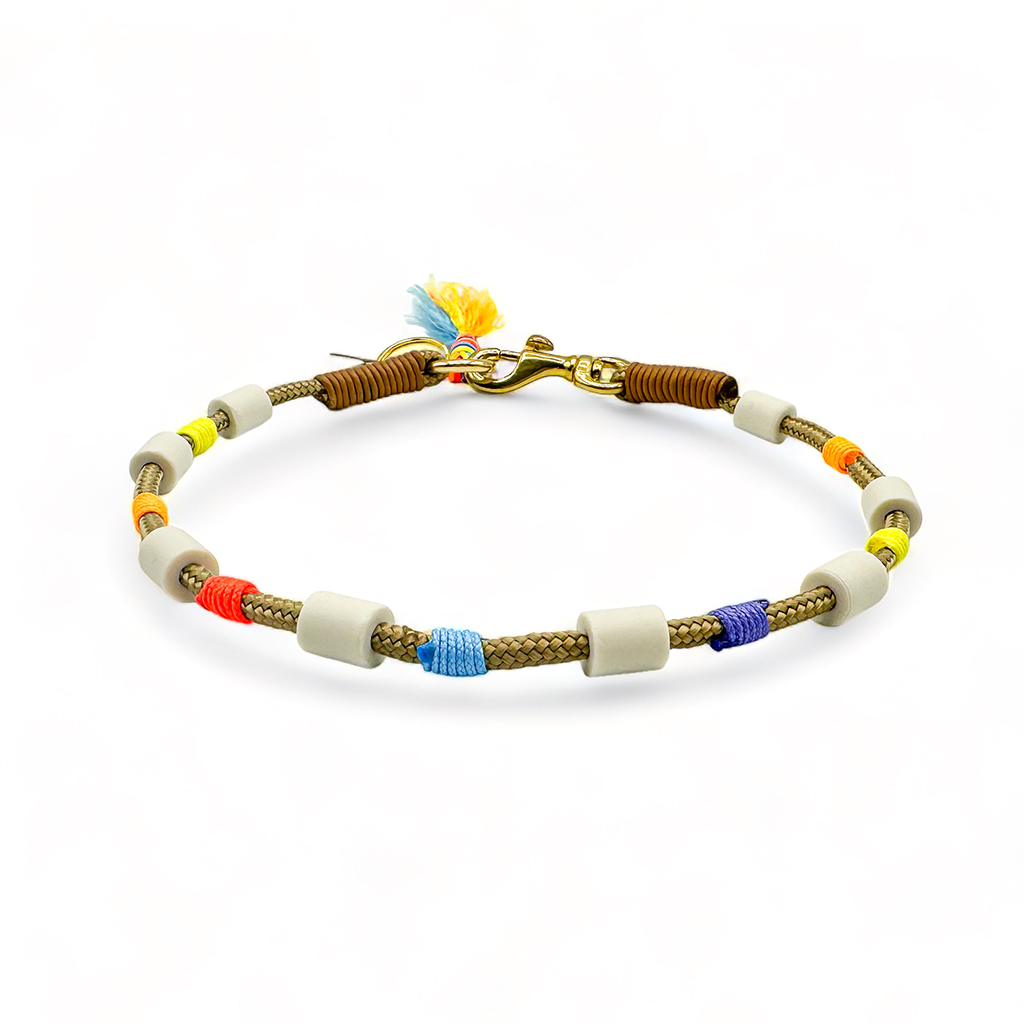 Farbe & Material: PPM Tau in Goldbraun, Paracordband in Pastell Gelb, Pastell Lila, Neon Orange, Blau und Pastell Orange