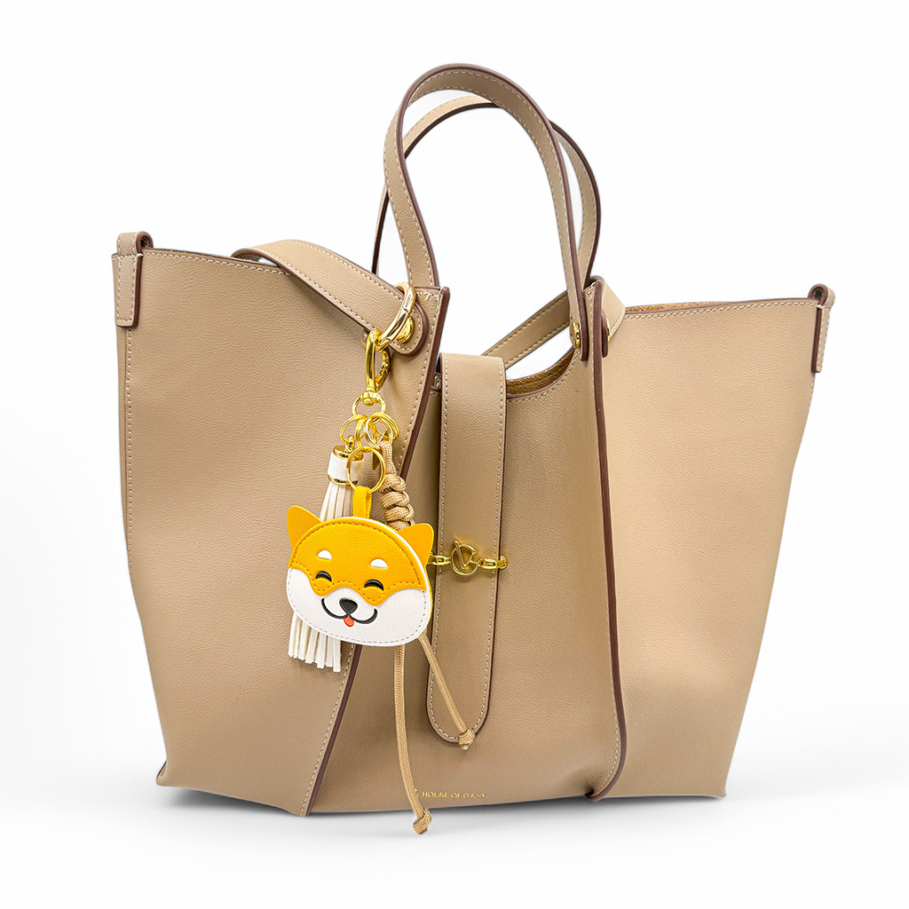 Dieser stylische Taschenanhänger besteht aus einem Schiba Inu/Akita Inu Kopf, einer Quaste in Weiß, einem Paracordanhänger in Sandgold und einem Herzkarabiner an dem alle einzelteile befetigt sind.